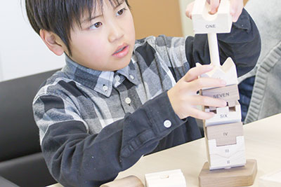 数字の形を覚えて順番通りに積まなければ、ナンバータワーは完成しません。